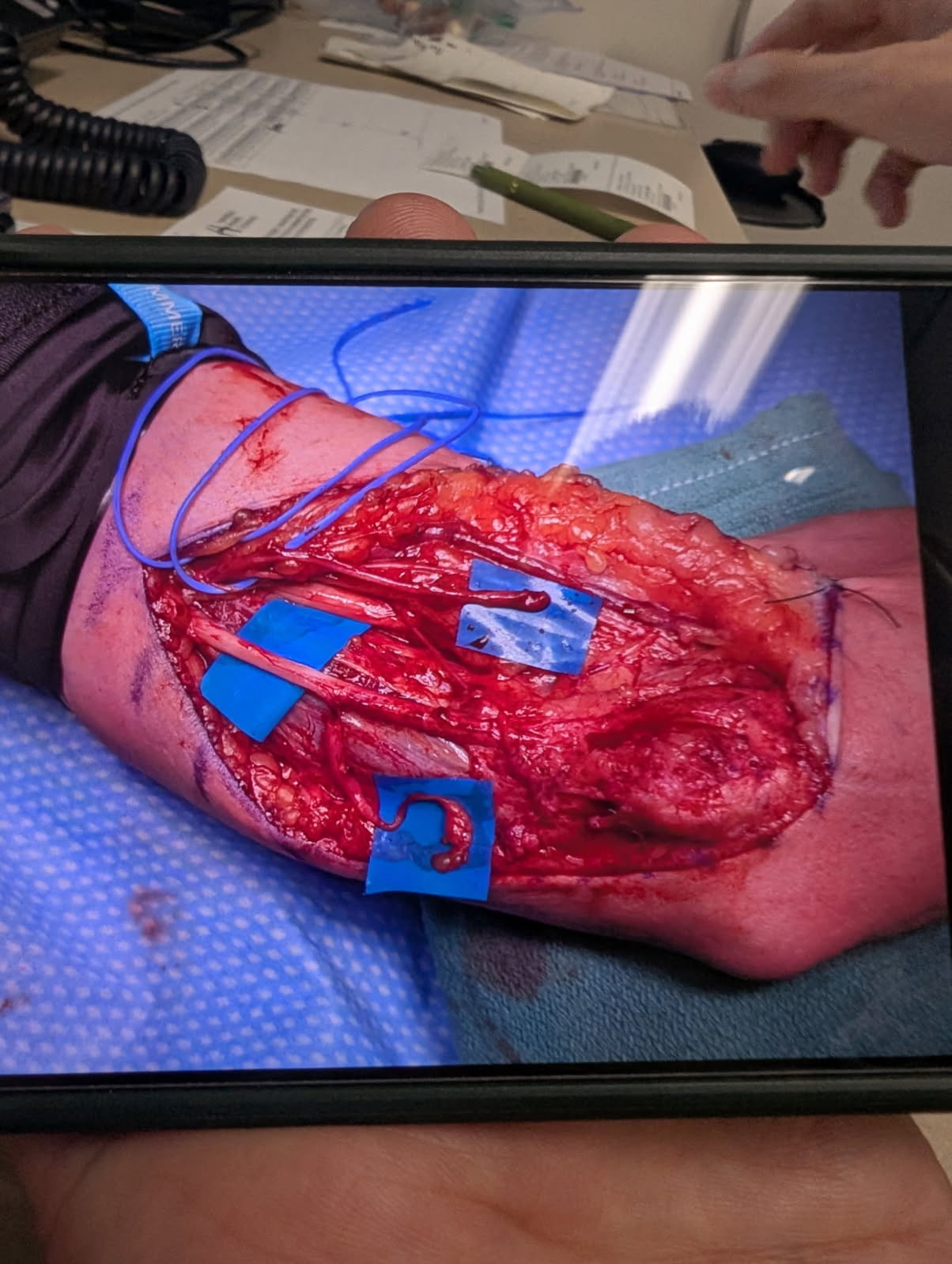 Permission was obtained to share with this platform. Patient had surgery to repair nerves in her upper arm.